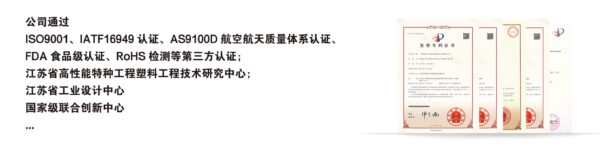 江苏君华特种高分子材料股份有限公司专注于PEEK (聚醚醚酮)、PPS(聚苯硫醚)、PI (聚酰亚胺)等高性能高分子树脂、型材的应用研发及生产,并形成了一条具备PEEK树脂原料聚合、改性造粒、板棒管片等型材连续挤出成型及成品零件的注塑和机加工的全产业链。