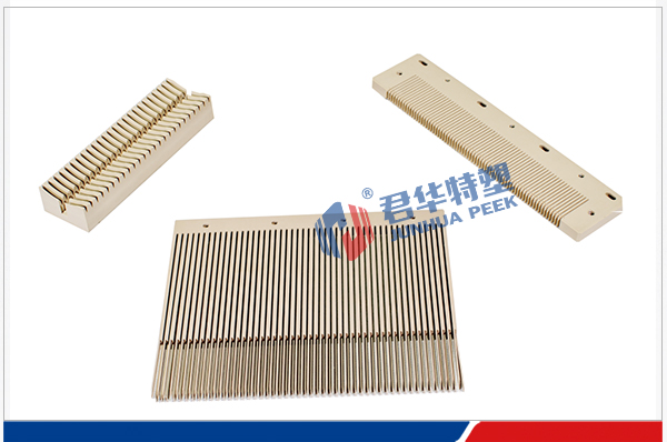 PEEK梳齿零件用于倒片机、上下料机设备。PEEK梳齿相比与陶瓷梳齿,具有易加工、韧性好等特点,同时价格只有陶瓷梳齿的1/3左右。