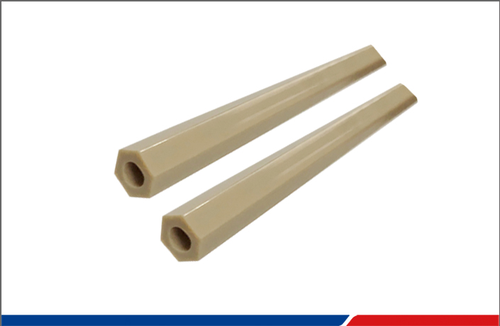 采用连续挤出工艺生产的PEEK外六角管,解决了模压工艺产品高度受限及注塑工艺容易产生内部收缩孔的技术难题,同时减少了材料损耗,降低了机加工成本。可用于加工PEEK隔离柱、PEEK外六角螺母(机加工)、PEEK手紧接头、PEEK外六角两通等带有外六角的产品。