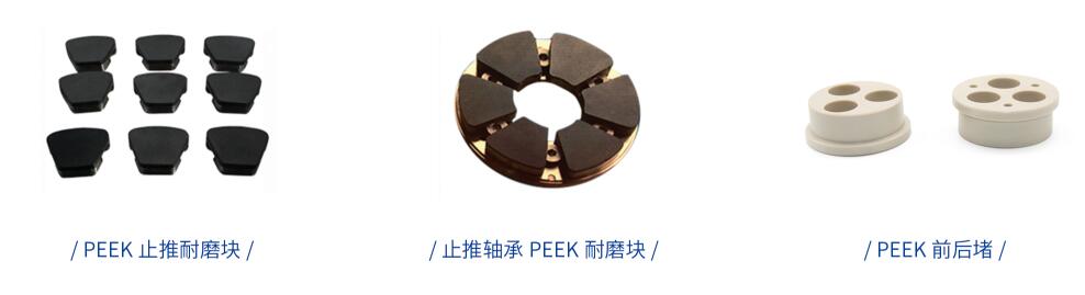 采用PEEK及其改性复合材料加工成的高温耐磨轴套、绝缘圈、前后堵等高性能塑料零件,可以替代铜合金、不锈钢、聚四氟乙烯、普通工程塑料、石墨等传统材料,满足石油测井及开采设备中对零件耐磨损、耐高温、高强度、无油润滑、酸碱腐蚀、高可靠性等苛刻技术要求,可以降低运行成本并有助于设备在高产能下,连续稳定的生产。