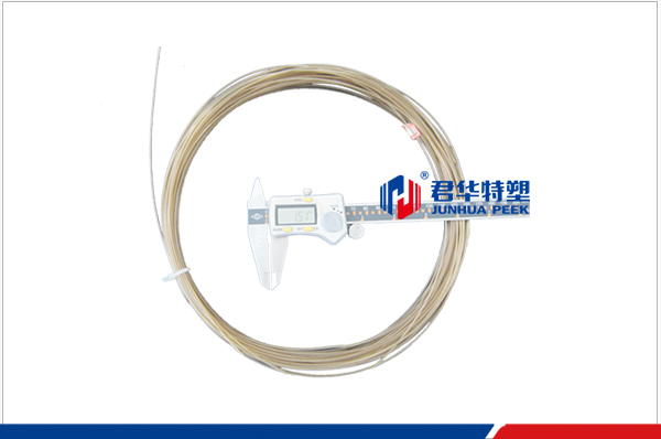PEEK细丝:高韧性,高强度PEEK细丝通过连续挤出工艺成型,尺寸稳定性好,可连续挤出成型几千米不断裂,广泛应用于3D打印等行业。