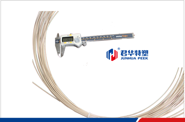 PEEK细丝:高韧性,高强度PEEK细丝通过连续挤出工艺成型,尺寸稳定性好,可连续挤出成型几千米不断裂,广泛应用于3D打印等行业。