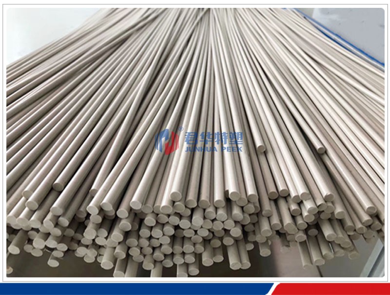 连续挤出的PEEK棒材被广泛使用于小批量大尺寸或注塑等工艺无法达到要求的产品机加工中。直径3-260mm范围的PEEK棒均能挤出生产,长度一般为1000mm、2000mm、3000mm,现有近百种直径规格的挤出模具,规格齐全,常年备有库存。