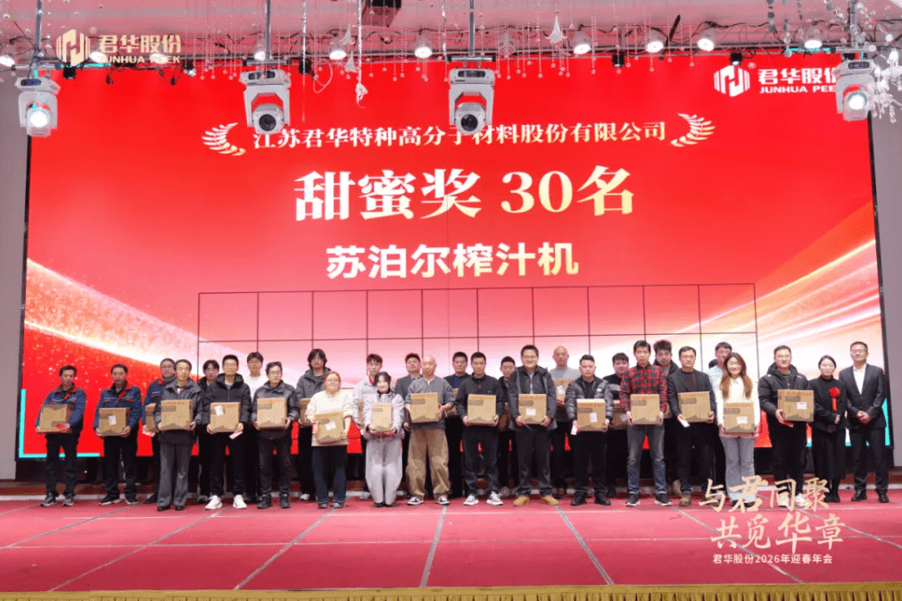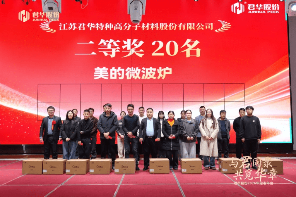 2026 年 1 月 31 日下午,君华股份全体员工齐聚星湖恒记饭店三楼景悦岚希宴会厅,隆重举办 “与君同聚,共觅华章” 主题年会,共同回首奋斗历程,表彰先进榜样,喜迎崭新一年。
