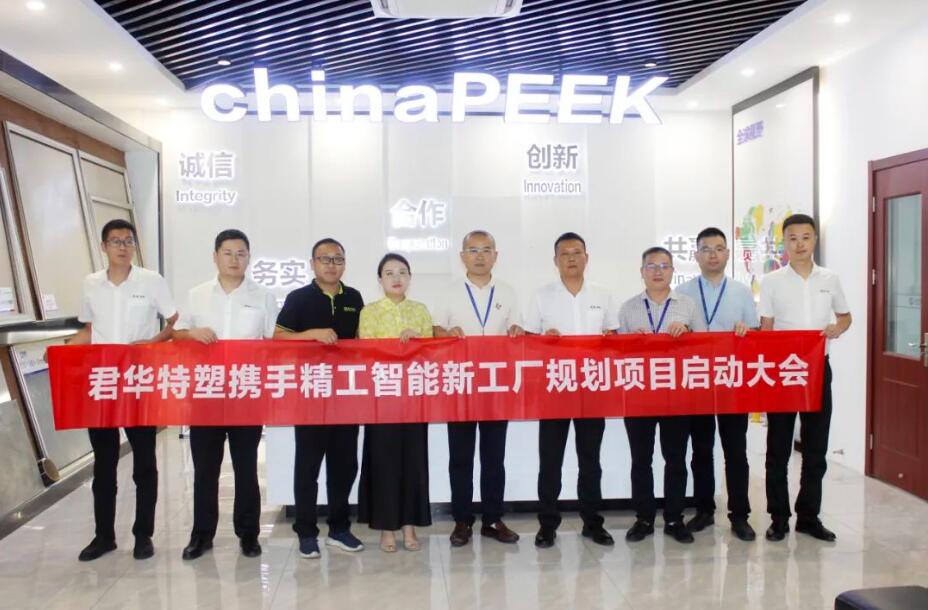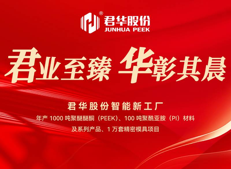 君业“至”臻 华彰其晨 —君华股份常州智能工厂开工奠基仪式2024年5月21日,“江苏君华特种高分子材料股份有限公司年产1000吨聚醚醚酮(PEEK)、100吨聚酰亚胺(PI)材料及系列产品、1万套精密模具项目”奠基仪式圆满完成。