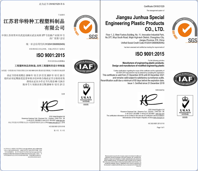 本次顺利通过双标体系审核认证,是对我司PEEK质量管理体系运行取得成效的肯定,是江苏君华特塑取得汽车行业客户PEEK产品配套资格和进入市场的敲门砖,同时也是我司新的起点,我司一定会借此契机,创造更大的辉煌。