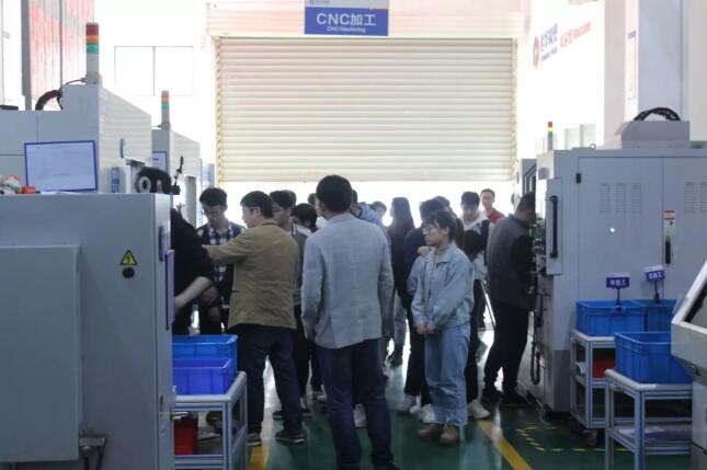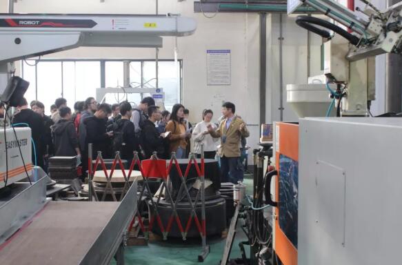 接着,谭宗尚先生带领同学们来到了检测室、各个生产车间,详细讲解了塑料原料从原粉经过改性造粒、模具设计、注塑、机加工等过程后变成产品的流程,并介绍了我司的生产加工设备及其生产原理。
