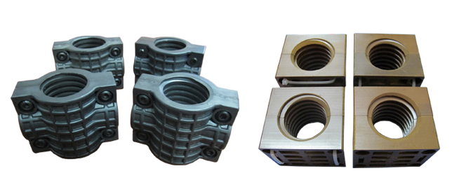 在纺织印染企业的拉幅和定型过程中,根据不同织物的幅度需对热定型机的导轨位置进行调幅,传统的铜合金材质的调幅螺母在220度左右的高温的工作环境下容易出现与金属丝网咬死而损坏的现象,通常需要加润滑油,喷涂二硫化钼润滑剂,这样既增加了定型机的维护保养成本又容易对织物造成污染因而成为困扰纺织印染企业的一大南通,迫切需要一种不需要加润滑剂的螺母来替代铜螺母。