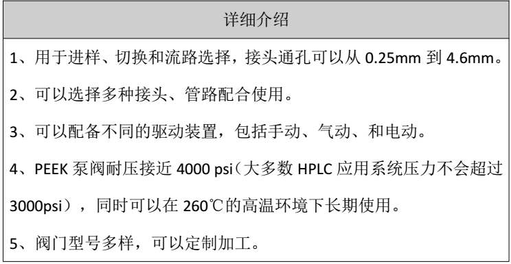1、用于进样、切换和流路选择,接头通孔可以从0.25mm到4.6mm。