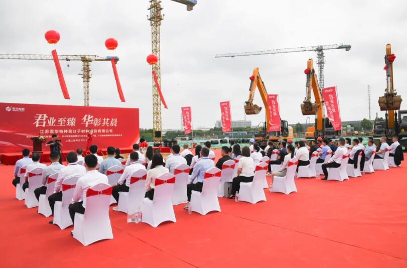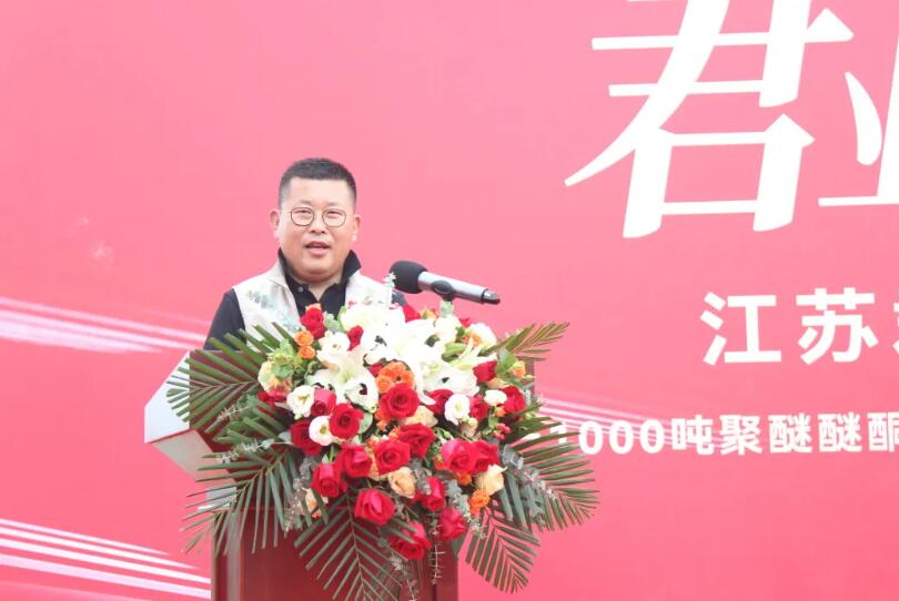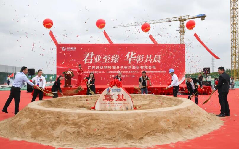2024年5月21日9点30分,“江苏君华特种高分子材料股份有限公司年产1000吨聚醚醚酮(PEEK)、100吨聚酰亚胺(PI)材料及系列产品、1万套精密模具项目”奠基仪式正式开始。