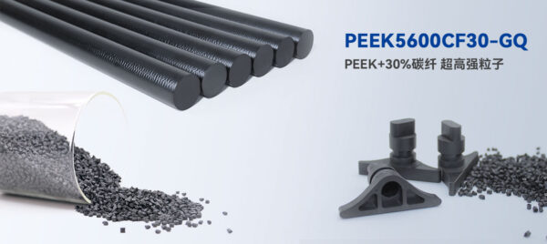 PEEK5600CF30-GQ粒子是基于PEEK5600CF30(普通PEEK碳纤维改性增强材料)的增强版,一种添加 30%碳纤维改性的 PEEK 复合材料,可以通过注塑、挤出的方式进行生产和加工。它相比于纯 PEEK 具有更高的机械强度以及尺寸稳定性,其力学性能普遍增强12%以上,适用于PEEK5600CF30无法满足要求的高载荷、高磨损、高温等苛刻工况下,延长零件使用寿命,降低更换频率。