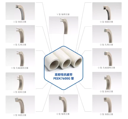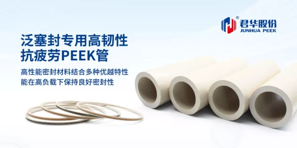 对于苛刻的工况,传统材质很难满足泛塞封持续的密封效果,君华股份在针对高温高压低温、耐腐蚀方面的技术基础上又开发了一款高韧性、高模量、低摩擦的 PEEK材质即牌号为PEEK7600G,并挤出相应规格的管材!
