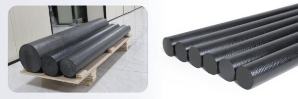 PEEK5600CF30棒(聚醚醚酮碳纤棒),是采用PEEK+30%碳纤增强原料挤出成型的一种半成品型材。PEEK5600CF30棒更耐高温、更耐磨损、耐腐蚀、机械性能好,但导电,可以用于加工制造严苛使用环境中高要求的高耐磨耐压机械PEEK零部件,如PEEK齿轮、PEEK轴承、PEEK阀座、PEEK密封圈等。用PEEK棒加工的零部件广泛应用于航空航天、医疗器械、电子半导体、生物制药设备、新能源汽车等领域的关键部件。