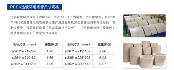 一、产品名称:连续挤出PEEK选镀环毛坯管