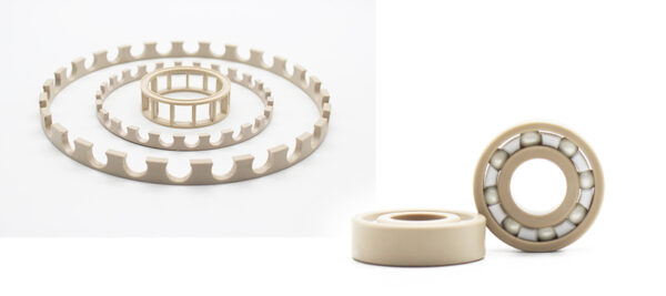 PEEK材料能够在与滚珠接触后表现出良好的滑动性能,而PEEK轴承保持架的与滚动元件接触的表面则具有出色的光滑度,二者运动时产生极低的摩擦力,从而导致轴承的发热和磨损都保持在低水平。