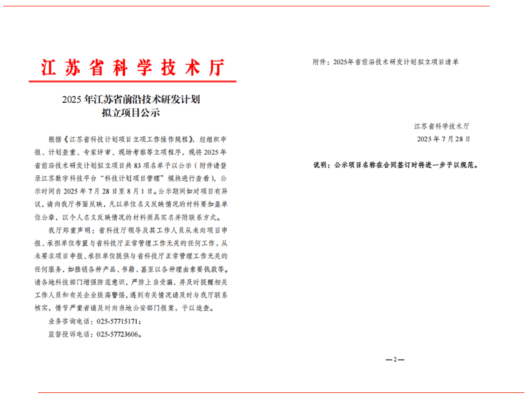 2025年7月8日,江苏省科学技术厅发布“2025年江苏省前沿技术研发计划拟立项目公示”,君华股份与南京航空航天大学合作申请的“航空航天高宽温域稳定性碳纤维增强CF/PAEK热塑性复合材料的研发”项目获批立项,现已过公示期。